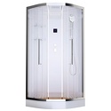 закрытая кабина • угловая • двери раздвижные • гидромассаж • баня • тропический душ • электронное управление • вентилятор • 90x90x220 см