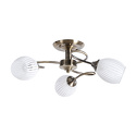 Потолочная люстра стиля модерн для кабинета, прихожей или спальни имеет размеры 560x190 мм. Арматура светильника окрашена в бронзовый цвет. Лампы в комплекте - отсутствуют. В светильнике применяются лампы накаливания или светодиодная LED-лампа. Цвет плафонов - белый, с матовой поверхностью. Материал плафонов - стекло. Класс электробезопасности - I, степень пылевлагозащиты (IP) - 20. Максимальная мощность лампы (Вт) - 40. Светильник размещается на потолоке.