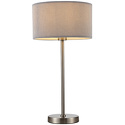 Настольная лампа декоративная стиля модерн для гостиной, кабинета или спальни имеет размеры 290x560 мм. Арматура светильника окрашена в серебрянный цвет. Лампы в комплекте - отсутствуют. В светильнике применяются лампы накаливания или светодиодная LED-лампа. Цвет плафонов - серый, с матовой поверхностью. Материал плафонов - текстиль. Класс электробезопасности - II, степень пылевлагозащиты (IP) - 20. Максимальная мощность лампы (Вт) - 40. Светильник размещается на столе.