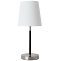 Настольная лампа декоративная стиля модерн для гостиной, кабинета или спальни имеет размеры 200x450 мм. Арматура светильника окрашена в серебрянный и черный цвет. Лампы в комплекте - отсутствуют. В светильнике применяются лампы накаливания или светодиодная LED-лампа. Цвет плафонов - белый, с матовой поверхностью. Материал плафонов - текстиль. Класс электробезопасности - II, степень пылевлагозащиты (IP) - 20. Максимальная мощность лампы (Вт) - 60. Светильник размещается на столе.