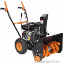 Двигатель: бензиновый, 7 л.с., 5200 Вт • Ширина захвата: до 56 см • Дальность выброса: 12 м • Механизм: металлический шнек