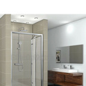 Тип: кабина, симметричная • Стенки: полностенная, материал стекло • Двери: книжка • Поддон: низкий • Габариты: 900х900х2150 мм