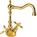 Назначение: для умывальника • Конструкция: двухрычажный • Монтаж: горизонтальный • Материал: покрытие - золото • Монтажные отверстия: 1 отверстие • Форма излива: традиционная • Душевая лейка в комплекте: нет