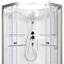 открытая кабина • угловая • двери раздвижные • гидромассаж • баня • тропический душ • электронное управление • вентилятор • 100x100x200 см