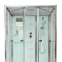 Монтаж душевой кабины осуществляется без использования силикона. Латунный смеситель с керамическими картриджами и резьбовыми соединениями. 100% акриловый поддон с дренажными отводами высотой 50 см со съемным экраном усиленный металлическим каркасом с антискользящим покрытием. Прозрачное безопасное закаленное сверхпрочное стекло толщиной 6 мм с антикальциевой обработкой. Душевая штанга с регулировкой лейки по высоте и ручная лейка с силиконовыми форсунками с функцией переключения режимов.
