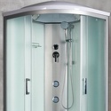 Закрытая кабина, полностенная, двери раздвижные, материал стенок: стекло, тропический душ, вертикальный гидромассаж, габариты (ШхВхД): 80x210x80 см