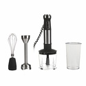 Тип: погружной (ручной) блендер • Мощность: 1200 Вт • Скорости: плавная регулировка, импульсный • Насадки: ножка, венчики, нож для измельчителя