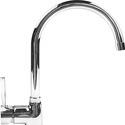 Тип - Однозахватный, Назначение - Для мойки, Материал корпуса - Латунь, Присоединительный размер - 3\8", Термостат - Нет, Поворотный излив - Да, Донный клапан - Нет, Покрытие - Хром, Встраиваемый - Нет, Аэратор - Есть, Количество монтажных отверстий - 1, Тип подводки - Гибкая, Форма излива - Традиционная, Цвет - Серебристый, Длина излива - 220, Высота излива - 230, Высота - 36.5