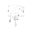 Тип - Двухзахватный, Форма излива - Традиционная, Поворотный излив - Да, Максимальный расход воды - 22.3, Покрытие - Хром, Присоединительный размер - 1\2", Высота излива - 165, Высота - 19.3, Материал корпуса - Латунь, Термостат - Нет, Количество монтажных отверстий - 1, Донный клапан - Нет, Встраиваемый - Нет, Назначение - Для умывальника, Длина излива - 129, Тип подводки - Гибкая, Цвет - Серебристый, Аэратор - Есть