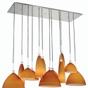 Подвесной светильник стиля модерн для гостиная имеет размеры 1200x500x1900 мм. Арматура светильника окрашена в хромовый цвет. Лампы в комплекте - отсутствуют. В светильнике применяются лампы накаливания или светодиодная LED-лампа. Цвет плафонов - янтарный полосатый, с матовой, рельефной поверхностью. Материал плафонов - стекло. Класс электробезопасности - I, степень пылевлагозащиты (IP) - 20. Максимальная мощность лампы (Вт) - 40. Светильник размещается на потолоке.