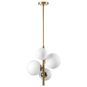Подвесной светильник стиля модерн для гостиной, кабинета, прихожей или спальни имеет размеры 420x1260 мм. Арматура светильника окрашена в латунный цвет. Лампы в комплекте - отсутствуют. В светильнике применяются лампы накаливания или светодиодная LED-лампа. Цвет плафонов - белый, с матовой поверхностью. Материал плафонов - стекло. Класс электробезопасности - I, степень пылевлагозащиты (IP) - 20. Максимальная мощность лампы (Вт) - 40. Светильник размещается на потолоке.
