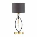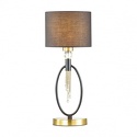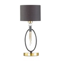 Настольная лампа декоративная стиля классика для гостиной, кабинета или спальни имеет размеры 200x485 мм. Арматура светильника окрашена в латунный и черный цвет. Лампы в комплекте - отсутствуют. В светильнике применяются лампы накаливания или светодиодная LED-лампа. Цвет плафонов - черный, с матовой поверхностью. Материал плафонов - металл, текстиль. Класс электробезопасности - I, степень пылевлагозащиты (IP) - 20. Максимальная мощность лампы (Вт) - 60. Светильник размещается на столе.