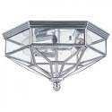 Накладной светильник стиля модерн для улицы имеет размеры 352х304х192 мм. Арматура светильника окрашена в хромовый цвет. Лампы в комплекте - отсутствуют. В светильнике применяются лампы накаливания или светодиодная LED-лампа. Цвет плафонов - неокрашенный, с прозрачной, рельефной поверхностью. Материал плафонов - стекло. Класс электробезопасности - I, степень пылевлагозащиты (IP) - 43. Максимальная мощность лампы (Вт) - 60. Светильник размещается на потолоке.