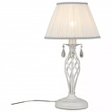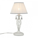 Настольная лампа декоративная стиля классика для гостиной, кабинета или спальни имеет размеры 300x550 мм. Арматура светильника окрашена в белый цвет. Лампы в комплекте - отсутствуют. В светильнике применяются лампы накаливания или светодиодная LED-лампа. Цвет плафонов - кремовый, неокрашенный, с матовой, прозрачной, рельефной поверхностью. Материал плафонов - текстиль, хрусталь. Класс электробезопасности - II, степень пылевлагозащиты (IP) - 20. Максимальная мощность лампы (Вт) - 40.