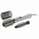 Тип: с щеткой • Мощность: 1000 Вт • Количество режимов: 6 • Количество режимов нагрева: 3 • Количество скоростей обдува: 2 • Дополнительные насадки в комплекте: насадка-щетка с функцией автоматического вращения • Дополнительные функции: ионизация • Шнур питания: вращающийся вокруг своей оси, 1.8 м • Петля для подвешивания: есть • Цвет: белый, серебристый
