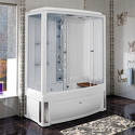 закрытая кабина • двери раздвижные • гидромассаж • баня • тропический душ • электронное управление • вентилятор • 85x168x226 см