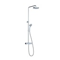 Устройство: душевая система • Смеситель: термостатический • Верхний душ: размер 200 мм, настройки 1 шт • Комплектация: лейка, смеситель, стойка, шланг, крепление лейки