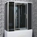 Закрытая кабина, полностенная, комбинированная с ванной, двери раздвижные, тропический душ, вертикальный гидромассаж, контрастный душ, габариты (ШхВхД): 88x220x170 см