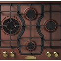 Поверхность: варочная панель • Тип поверхности: газовая • Число конфорок: 4 • Установка: независимая • Газовые конфорки: всего - 4 • Газ-контроль конфорок: есть • Тип управления: механическое • Переключатели: поворотные • Электроподжиг: есть, автоматический • Размеры: 580x500x41 мм • Размер ниши для встраивания: 560x480 мм • Цвет: панель - медь